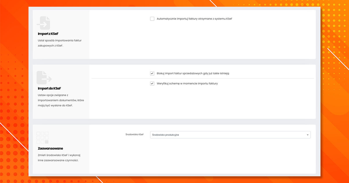 - "Automatycznie importuj faktury otrzymane z systemu KSeF"