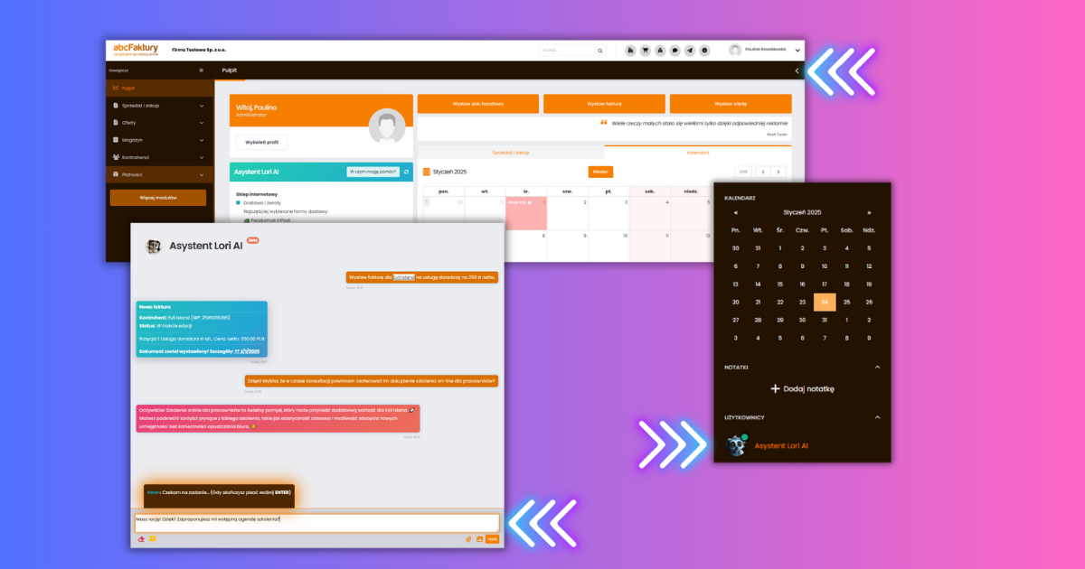 Aplikacja do prowadzenia firmy abcFaktury Online została wyposażona w Asystenta Lori AI - sztuczną inteligencję, która nie tylko ułatwi i usprawni Twoją pracę w aplikacji, lecz także pomoże w zarządzaniu firmą.